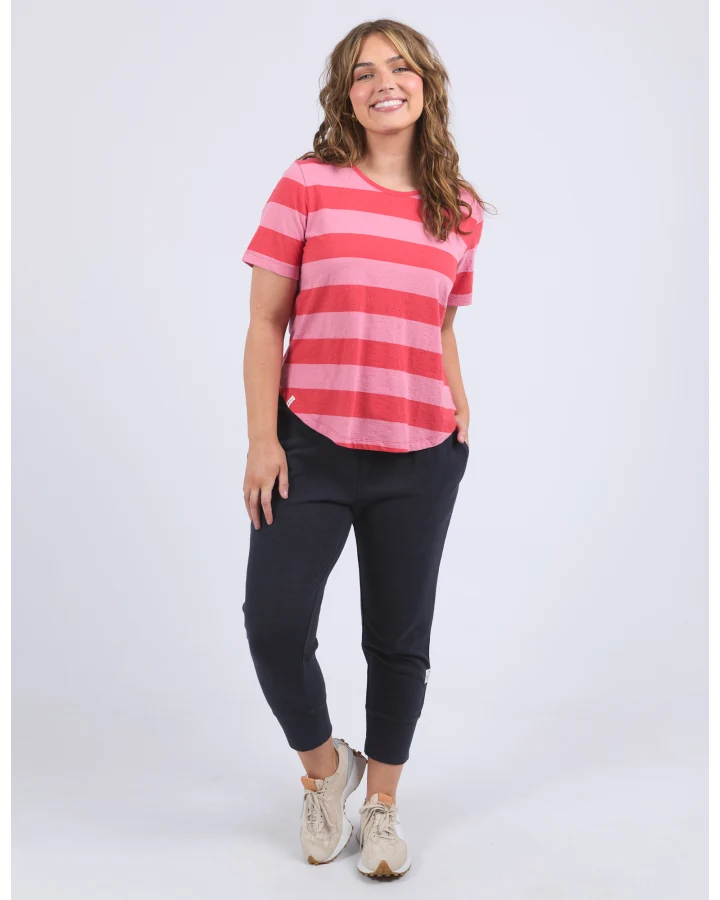 Elm Caynne Spritz Chateau Rose Stripe T Shirt. Bold colourful stripes make for a fantastic layering piece. Constructed from 100% cotton slub jersey this mid weight layer is a wonderful colour pop for any wardrobe. Cotton Slub Jersey