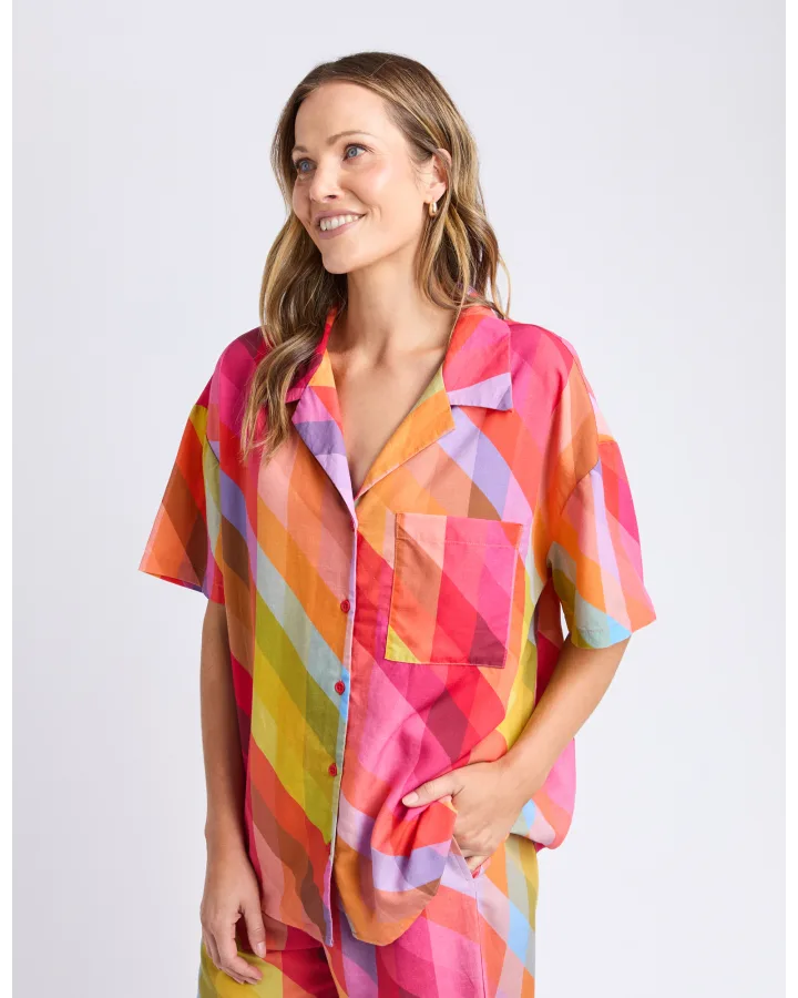 Elm Rena Shirt Multi. This stunning piece is definitely made for a party! Featuring our exclusive Rena Print this beautiful shirt is flattering and chic and will have you being the 'hostess with the mostest' this Festive Season! A hot seller be quick with this one! Relaxed fit in 89% Lyocell and 11% Linen. Our model is 171cm and wearing a size 10.