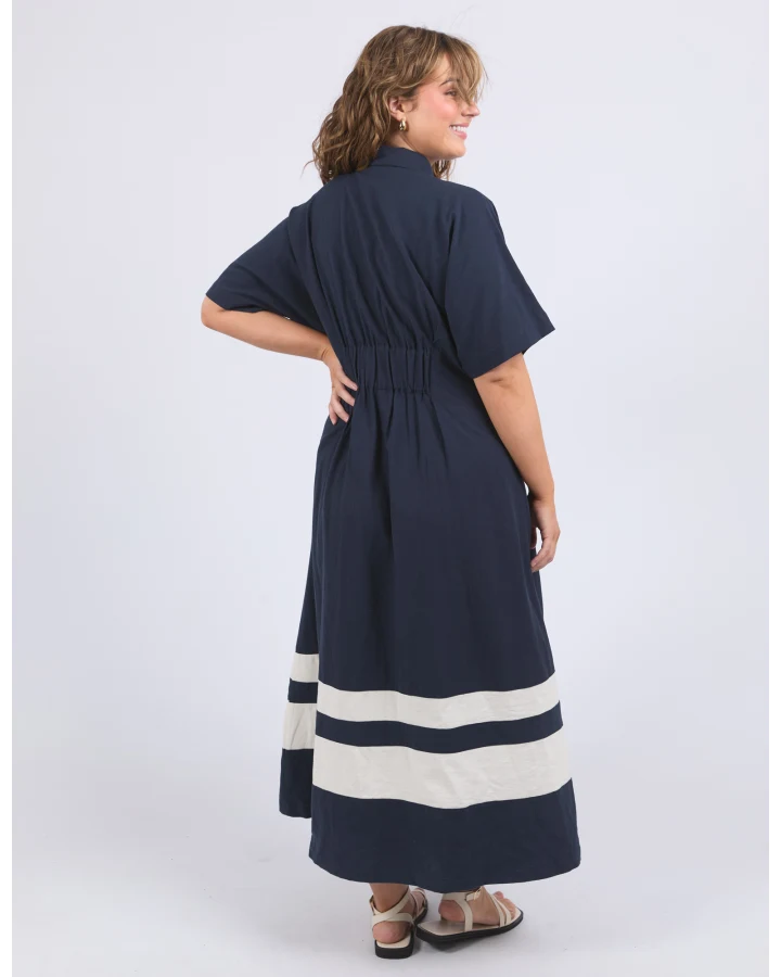 Elm Scarlet Midi Dress. Easy and versatile, the scarlet midi dress includes full button closure, short sleeve , and elastic at back. Style it your way for an effortless look that works for any day of the week. Viscose, Linen, Cotton