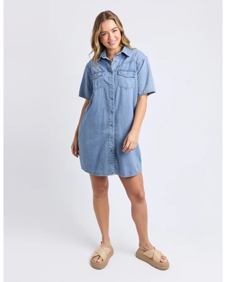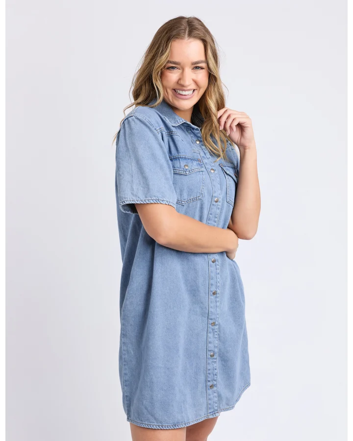 Foxwood Sorcha Denim Dress. The denim dress of the season! This indigo denim oversized shirt dress is simple perfection. Wear with a pair of chunky sandals for your next drinks out with the girls or pop on a pair of trainers for a luxe on-the-move look. Relaxed fit with side pockets. Model is 178cm tall and wears a size small.
