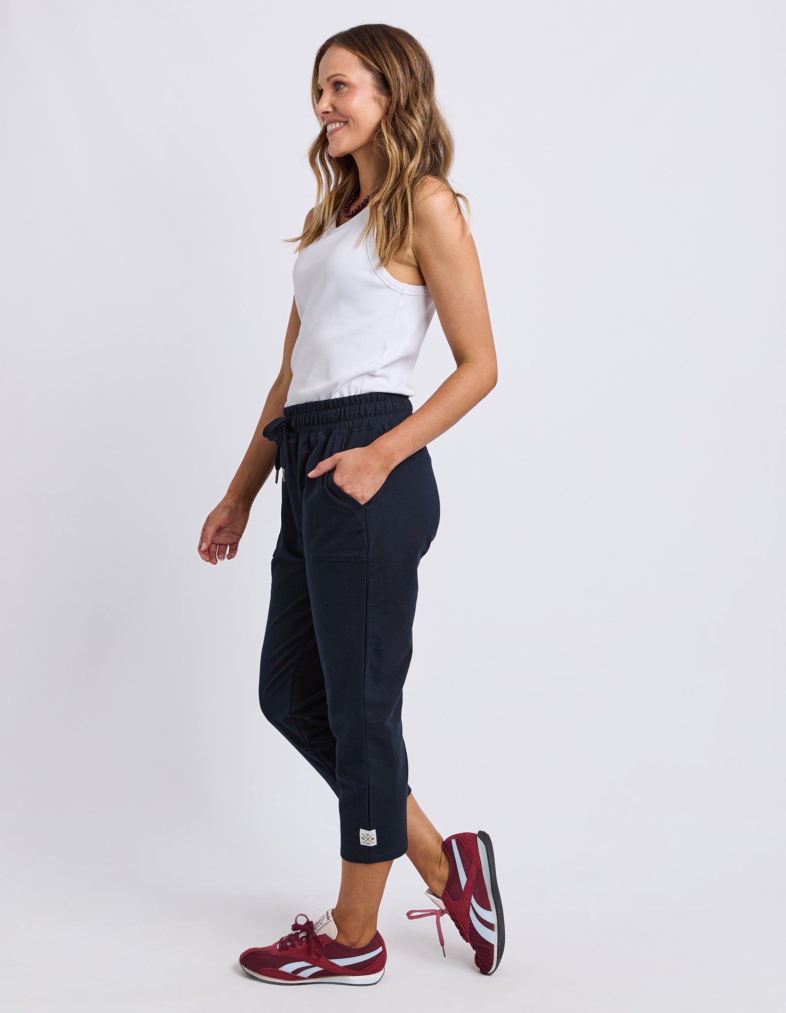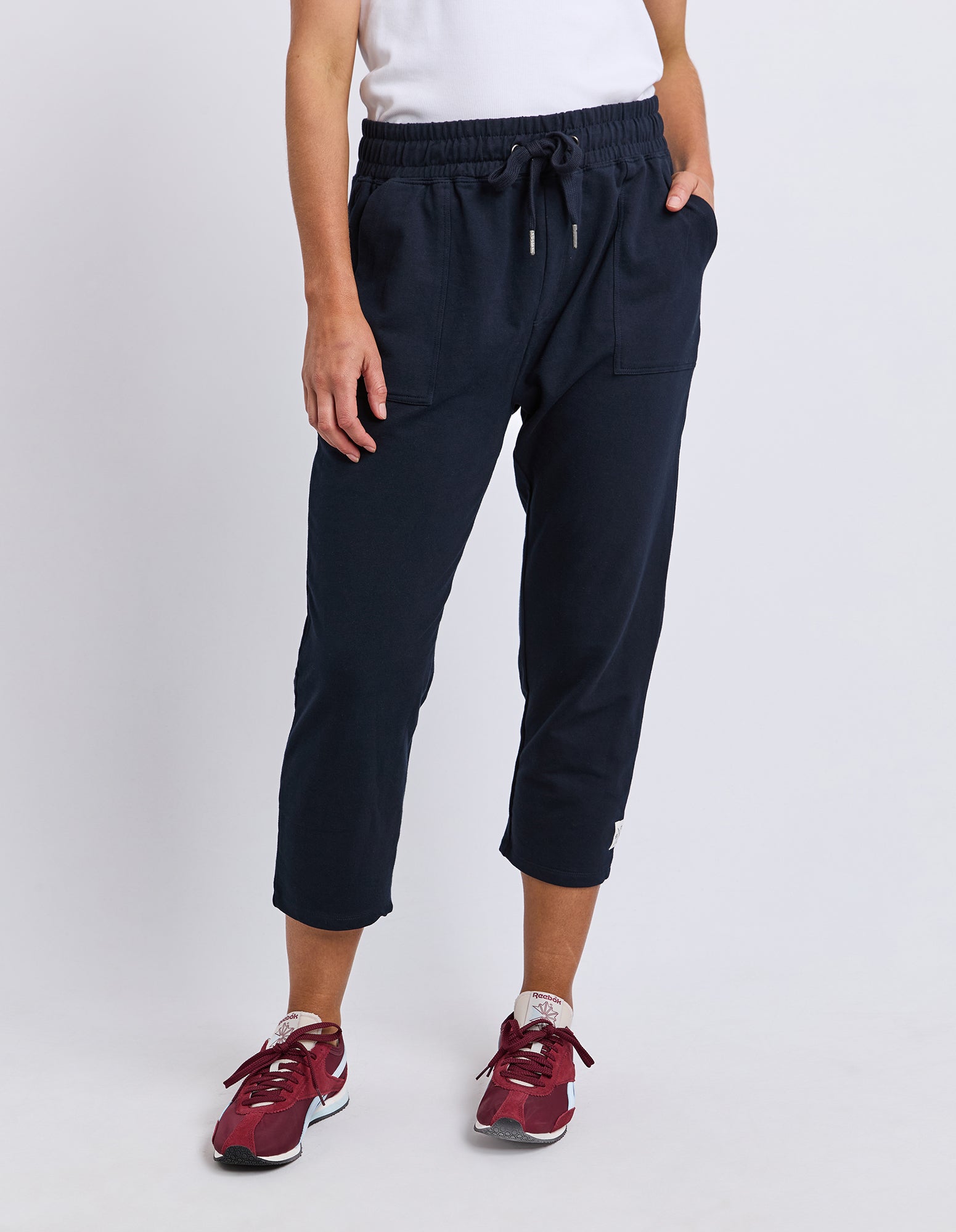 Elm Sutton Trackpants Navy. Â If you like your trackpants a little shorter or to show off those cute socks, then the Sutton are for you! A new addition to the Fundamental range these pants in 3/4 or 7/8 these are super comfortable and relaxed with patch pockets and an elastic waist. Wear them all day, everyday.