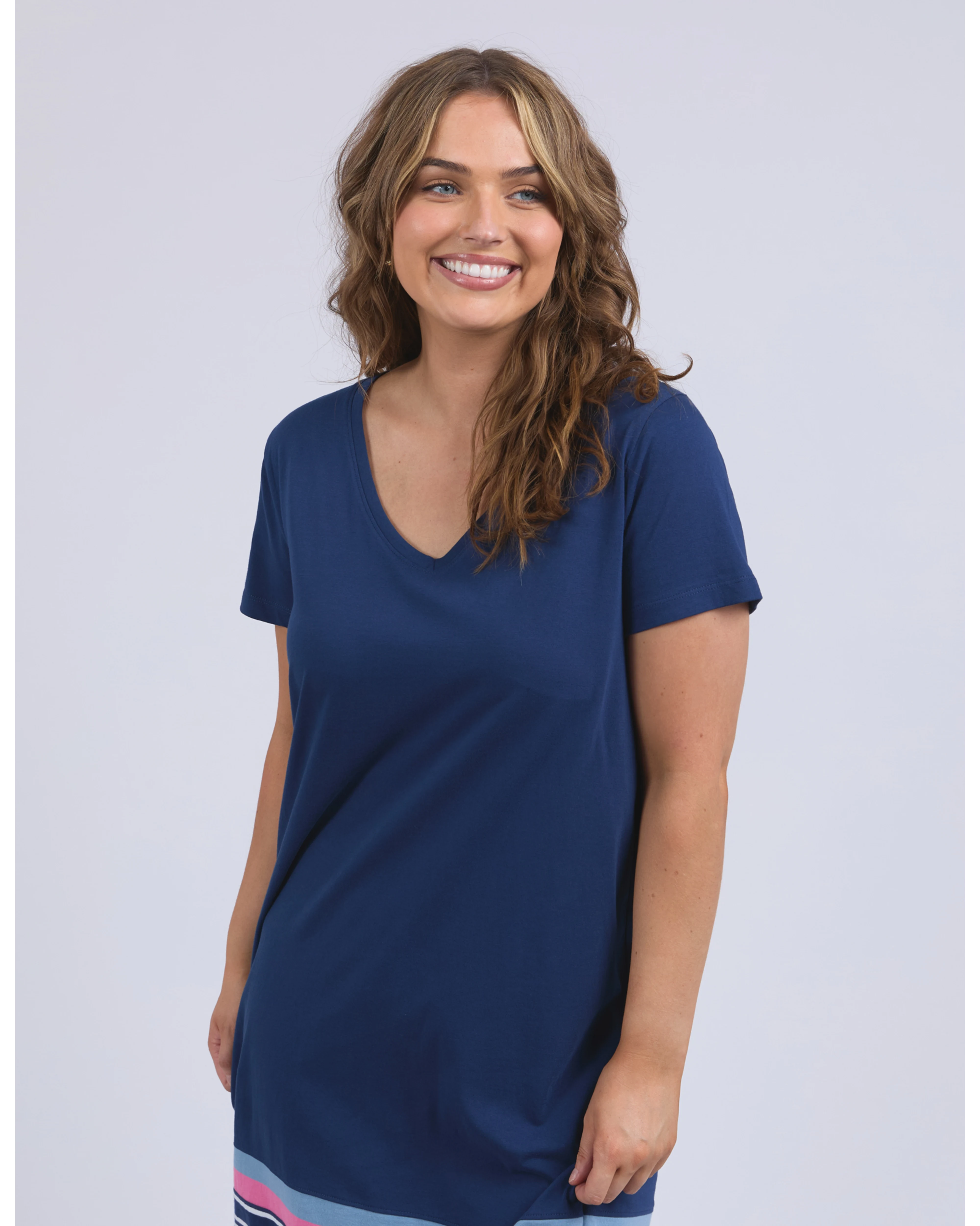 Elm Sylvia Tee Dress is a quintessential Elm Tee Dress featuring colourful stripes in all the hues of the season in 100% Cotton Jersey.