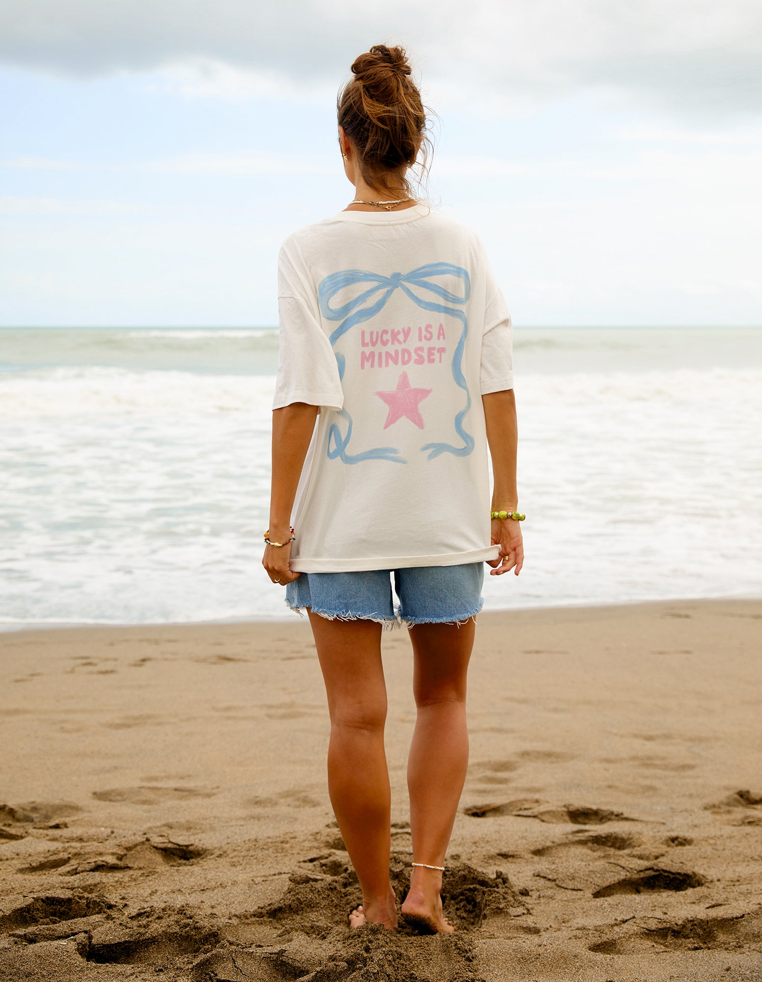 Foxwood Studio Series Lucky Star T Shirt White. Lucky looks good on you. The Lucky Stars Tee brings that sun kissed, carefree energy with soft cotton, faded pastel vibes and hand painted artwork made for dreamers. It’s got that worn in feel, like it’s already lived a few beach days and late nights. A reminder that good energy is a choice and luck really is a mindset.