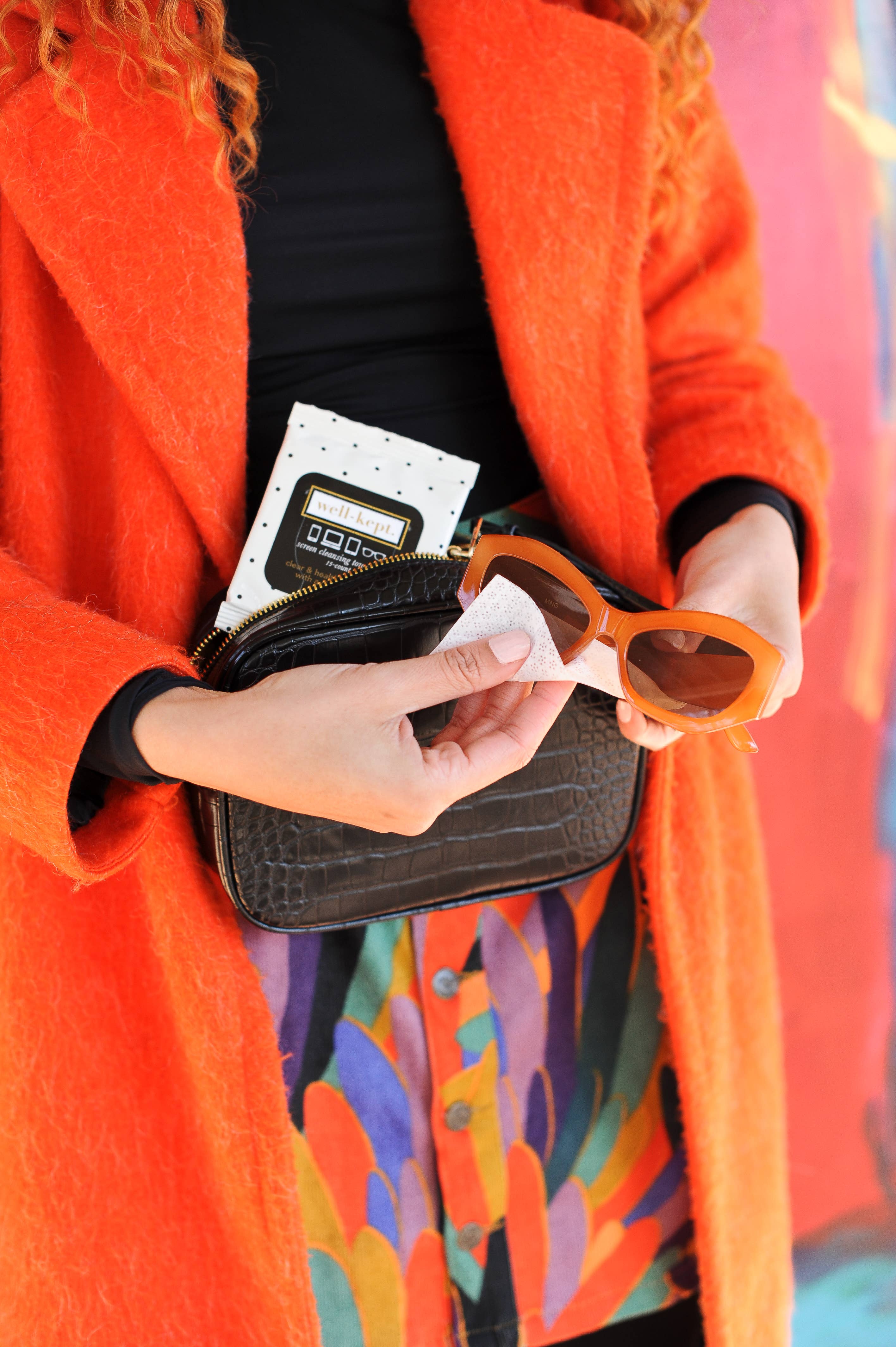 Well Kept Jackie Screen Cleansing Towelettes/Tech Wipes. Classic Style | Screen Wipes for Phones, Glasses & More | Holiday Gift Favorite Sophisticated, stylish, and always in season. Jackie’s sleek black-and-cream polka dot design is timeless—making it a chic stocking stuffer or everyday purse essential. Each case includes 15 pre-moistened tech & lens wipes made to clean phones, glasses, tablets, earbuds, and more. The quick-dry, low-lint cloths whisk away smudges, makeup, and fingerprints—leaving screens crystal clear and streak-free. ✨