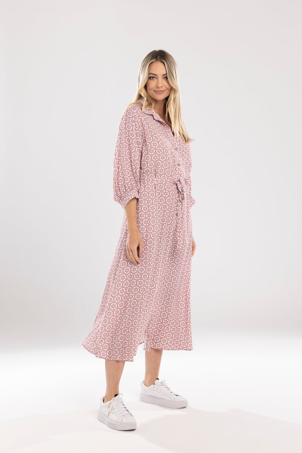 Mi Moso Dani Dress Mosaic Print. 100% Rayon with detachable sash.