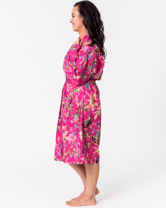 Paradise Kimono Robe Hot Pink. Let your mornings linger a little longer in our Black Paradise Kimono Robe. Perfect for staycations, vacations, house-guests and brides-to be.