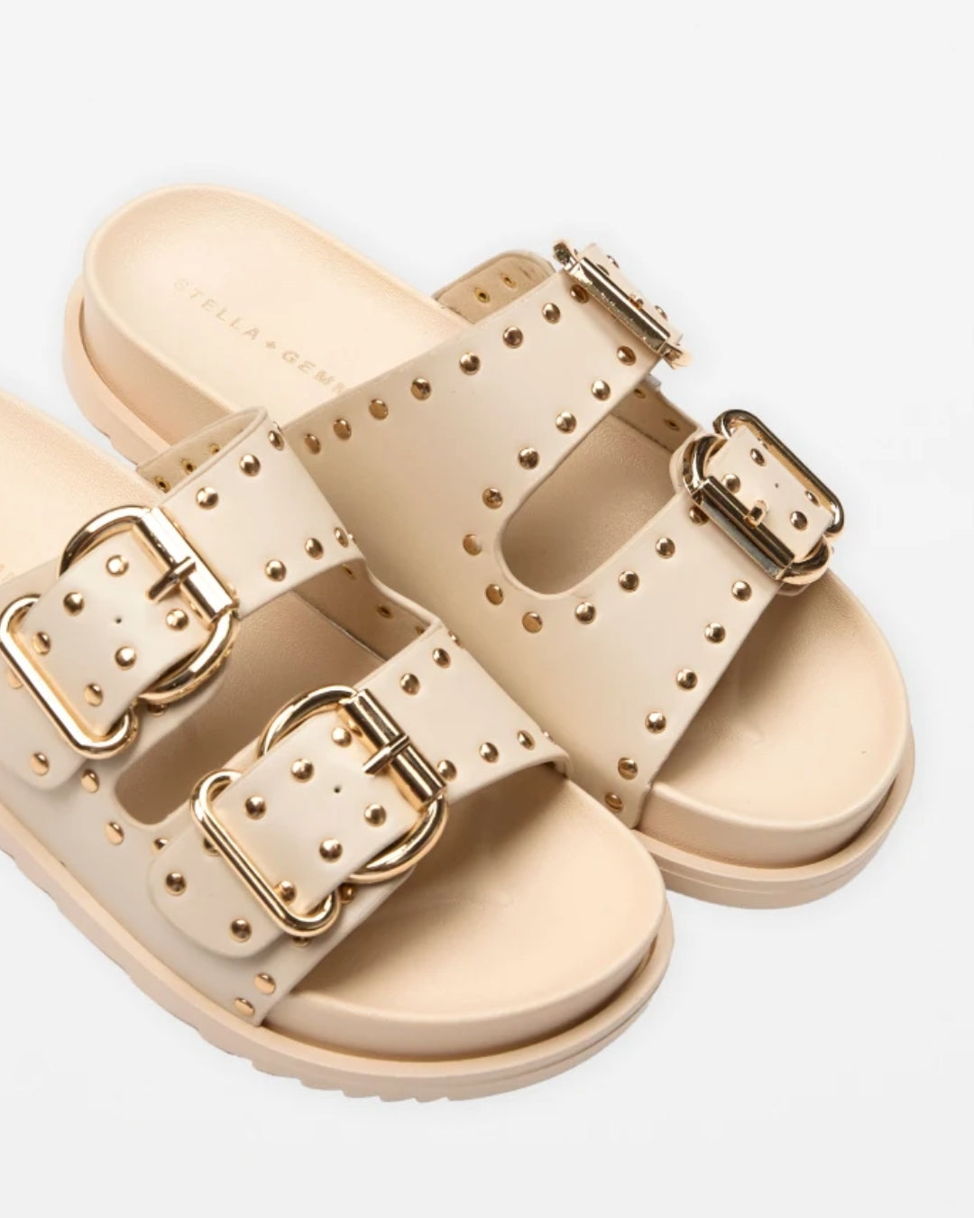 Stella and Gemma Amelia Slide Nude. We just love these super cute new vegan leather slides from Stella and Gemma. A must have for your Summer wardrobe.