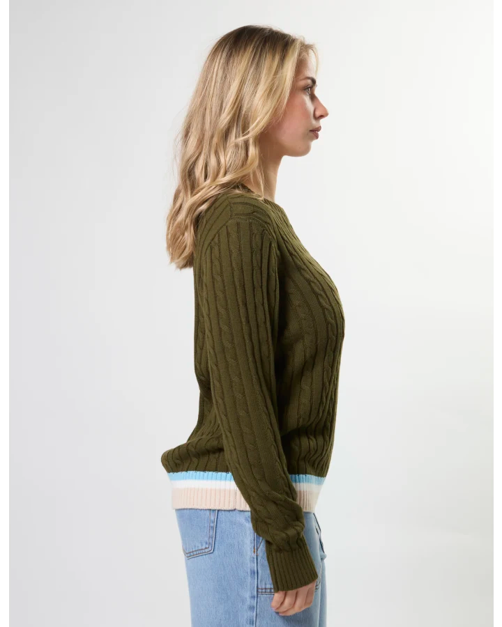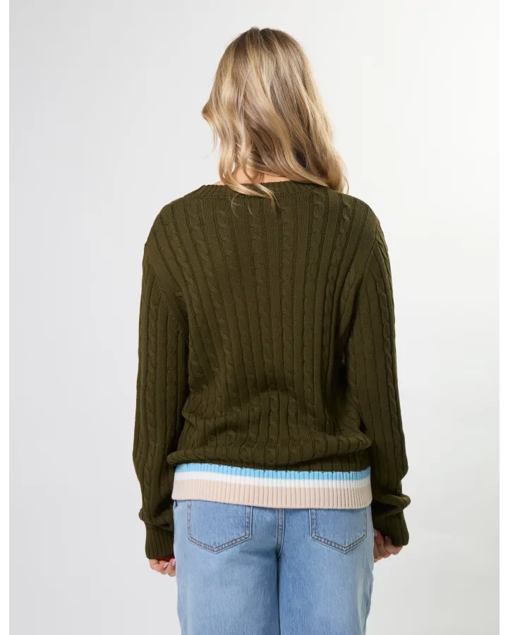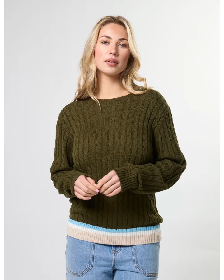 Stella and Gemma Cable Crew Jumper Khaki. A Super cute new arrival welcoming this gorgeous crew neck knit with cable design and ribbed trims.