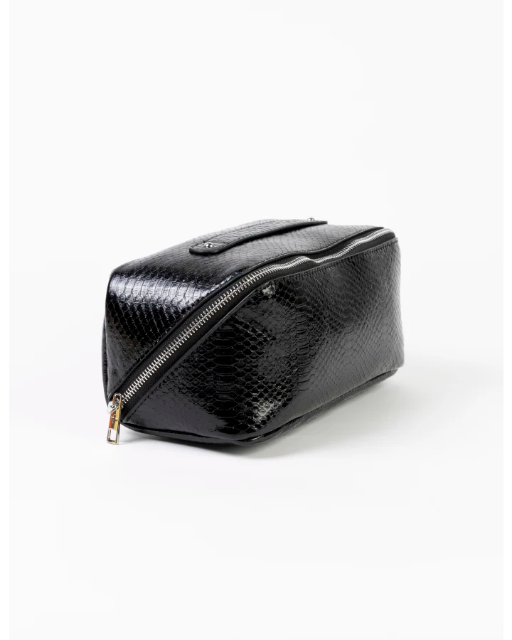 Stella and Gemma Voyage Cosmetic Bag Black. Cosmetic bag measures 24cm x 11cm x 11cm. Opens flat making it super easy to see and use everything inside. A must have for travel. 100% PU