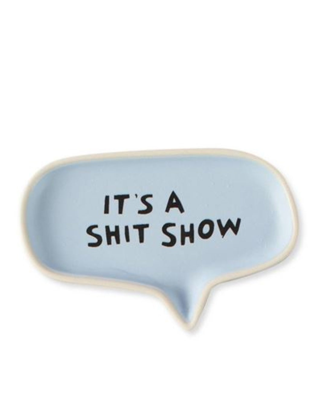 Trinket Tray Shit Show with with exclusive artwork by Martha Rich, matte coloured glaze, decal art, and exposed stoneware base.